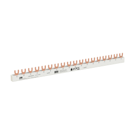 De ABB Vynckier BVY-G 3/18/10 is een geïsoleerde vork-doorverbinder voor het efficiënt doorverbinden van 3-polige modulaire componenten in verdeelinrichtingen. Dankzij de vorkaansluiting kunnen automaten en andere DIN-componenten snel en betrouwbaar doorverbonden worden zonder losse bedrading. De rail beschikt over 18 modules en een koperdoorsnede van 10 mm², geschikt voor standaard en zwaardere verdeeltoepassingen.