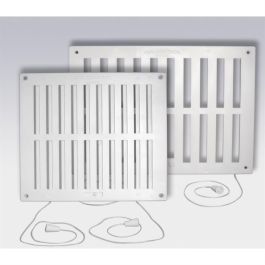 AIR CONTROL Schuifroosters met of zonder vliegengaas, afsluitbaar. Kunststof schuifroosters met koord en schuif, inclusief schroeven. Leverbaar in wit en bruin.