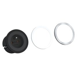 De Bachmann Pix 926.003 is een rond inbouwstopcontact met Franse UTE-aarding (type E). Compact, strak vormgegeven en ideaal voor werkbladen en meubels. Wordt geleverd met 2,0 m aansluitsnoer en verwisselbare sierringen voor een passende afwerking.