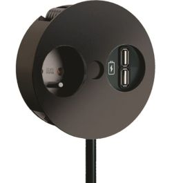 Bachmann TWIST bureau inbouwstekkerdoos met 1x stopcontact met penaarde, USB A/A en 0,2 meter kabel - zwart mat (931.135)
