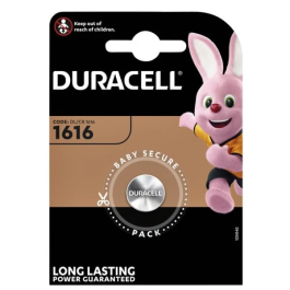 De ronde platte Duracell CR1616 3V batterij zit per stuk verpakt in een blister. De houdbaarheidsdatum die af te lezen valt op de blister van de CR1616 lithium knoopcel ligt altijd ver in de toekomst. De 3V batterij wordt veel toegepast in autosleutels en afstandsbedieningen.