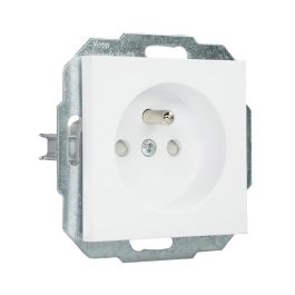 Dit stopcontact met penaarde wordt compleet geleverd (zowel de sokkel techniek als de centraalplaat). De sokkel is voorzien van verborgen klauwbevestiging. Deze kun je als alternatief gebruiken om de sokkel vast te zetten in je inbouwdoos, wanneer je de sokkel niet met schroefjes monteert.