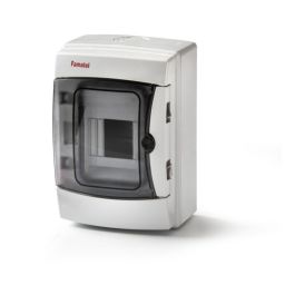 IP65 verdeelkast (1 x 4 modules) uit de Acqua series die gekenmerkt worden door hun waterdichtheid (IP65) en slagvastheid (IK08) waardoor ze uitermate geschikt zijn voor gebruik in omgevingen blootgesteld aan vocht en stof. Beschikbaar in uitvoeringen van 2 tot 48 modules, steeds uitgerust met een ergonomisch ontwikkelde transparante deur die een gemakkelijke en veilige toegang tot de interne installatiecomponenten garandeert. Afmetingen: 215 x 145 x 110mm.