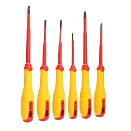 Hultafors VDE schroevendraaierset met Pozidriv en sleufschroevendraaiers. Bevat PZ 1 en 2 en sleufschroevendraaier 2.5, 3.5, 4 en 5.5. Hultafors VDE schroevendraaiers beschikken over een geïsoleerde kling met een extra smalle kling voor geoptimaliseerde toegang in krappe ruimtes. Alle schroevendraaiers zijn getest en gecertificeerd volgens IEC 60900 voor het werken met maximaal 1.000V.