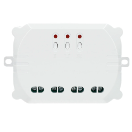 De ACM-3500-3 3-in-1 inbouwschakelaar is bedoeld om verlichting of apparatuur tot 3500 Watt draadloos in/uit te schakelen, verdeeld over drie uitgangen. Zodoende kun je met deze ontvanger drie lampen en/of apparaten draadloos bedienen. Per uitgang kun je maximaal zes KlikAanKlikUit-zenders naar keuze aanmelden.