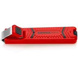 Het KNIPEX kabelmes Ø4–16mm (16 20 16 SB) is een professioneel ontmantelingsgereedschap voor ronde kabels. De zelfspannende grijpbeugel houdt de kabel stevig vast, terwijl het zelfdraaiende lemmet zorgt voor nauwkeurige cirkel- en lengtesneden.