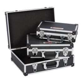De stevige, maar tegelijk lichte koffers met binnenbekleding meten 330x210x90 mm, 380x260x120 mm en de grootste 460x330x160 mm. Je draagt ze makkelijk overal mee naartoe dankzij de metalen zachte handgreep.