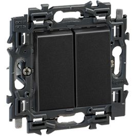 Legrand dubbele wisselschakelaar volledig apparaat met wip 10A met steekklemmen en spanklauwen - Valena Next Zwart Gefumeerd (741742)