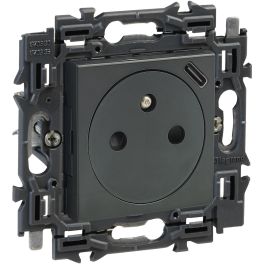 Legrand vlak stopcontact 2-polig met penaarde en USB C volledig apparaat 1100mA met steekklemmen en spanklauwen - Valena Next Zwart Gefumeerd (741737)