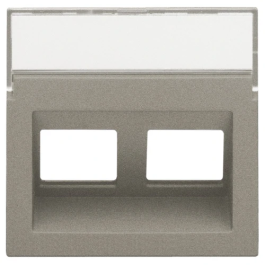Centraalplaat voor 2 RJ-aansluitingen met schuine uitgang. Voorzien van scharnierend, transparant tekstveld met etiket (9,5 x 42,4 mm). Gemaakt van vormvaste, halogeenvrije kunststof (pc+asa). Te gebruiken in combinatie met passtuk 4.4. Klikmontage, eenvoudig te demonteren. Slagvast (IK06), beschermingsgraad IP41. Afmetingen 44,5 x 44,7 x 8,6 mm.