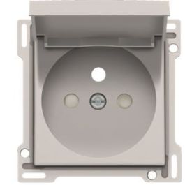 Centraalplaat voor inbouwstopcontact met penaarde, beschermingsafsluiters en klapdeksel. Het dient gebruikt te worden op een stopcontact met inbouwdiepte van 28,5mm.