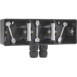 Deze 3-voudige horizontale opbouwdoos is spuitwaterdicht. Dit maakt het uitermate geschikt voor gebruik in vochtige ruimters en ammoniakrijke omgevingen.