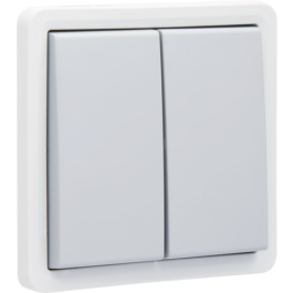 Deze dubbele wisselschakelaar is voorzien van insteekklemmen en wordt in een spuitwaterdichte montagedoos geplaatst. Het geheel is spuitwaterdicht en dus geschikt voor gebruik in vochtige ruimtes. De kleurcombinatie is lichtgrijs met donkergrijze toets.