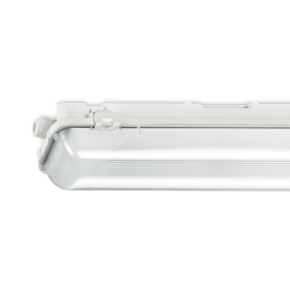 Waterdicht armatuur (IP66) met een optimale mix tussen een kwalitatief uitstekend armatuur en lage investeringskosten. Tot wel 60% energiebesparing. Behuizing van polyester versterkt met glasvezelmat. Diffuse acrylglas kap, binnenzijde lengteprisma. Comfortabel en egaal lichtbeeld. Incl. wartel en set plafondbeugels voor klikmontage. Eenvoudige montage. Accessoire: beschermkorf. Toepassingsgebieden: industrie en opslagfaciliteiten, werkplaatsen, agrarische sector en vochtige ruimten.