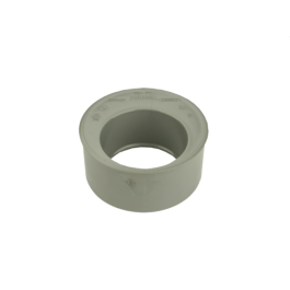 Aan de zijde van de grotere PVC-afvoerbuis heeft de verloopring een spie met een uitwendig lijmuiteinde, dat past in de mof van een hulpstuk voor de PVC-afvoer. Door het spie-uiteinde in de lijmmof te plaatsen, kun je vervolgens aan de andere zijde van de mof de PVC-afvoerbuis bevestigen.
