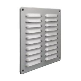 Hoogwaardig RVS 316 schoepenrooster met omgezette rand, opbouw, regeninslagvrij, voor toe- en afvoer van lucht. Verzonken bevestigingsgaten Ø 4 mm