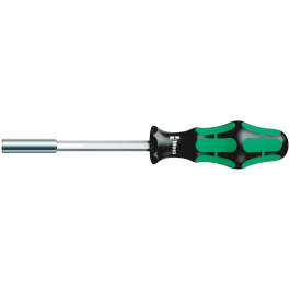 Hoogwaardige bit-handhouder met krachtige permanente magneet die de bits muurvast in het gereedschap houdt. Hoogwaardige Kraftform-handgreep voor snel en ergonomisch verantwoord werken. Kraftform Plus: Harde gripzones voor een hoge werksnelheid, zachte gripzones voor een hoge draaimomentoverdracht. Geschikt voor plaatsing van bits met 1/4" buitenzeskant-aandrijving conform DIN ISO 1173-C 6,3.