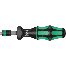 Wera draaimomentschroevendraaier. Variabele draaimomentinstelling, uiterst nauwkeurig. Vereist draaimoment eenvoudig instelbaar, zonder extra gereedschap. Schaalwaarde goed leesbaar. Met kliksignaal. Rapidaptor-snelwisseltechnologie maakt razendsnel wisselen van bit mogelijk. Onbegrensd losdraaimoment voor het losdraaien van vastzittende schroeven. Meervoudige Kraftform-handgreep met geïntegreerde harde en zachte delen voor een hoge werksnelheid en bescherming van de handen. Geschikt voor plaatsing van bits met 1/4" buitenzeskant-aandrijving conform DIN ISO 1173-C 6,3 en E 6,3 (ISO 1173).