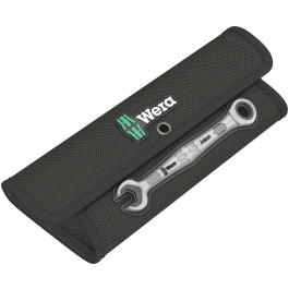 Hoogwaardige ringratel/steeksleutel-set van Wera: Alles wat een sleutel moet kunnen. En nog veel meer. Sneller, beter, mooier. Kortom: een echte Joker. De nieuwe generatie steek/ring-ratelsleutels. 8-delige set sleutels in inch-maten in robuust etui. Voor zeskant- schroeven resp. moeren. Met vasthoudfunctie via metalen plaat in bek, om het verliezen van schroeven en moeren te reduceren. De verwisselbare metalen plaat in de bek houdt met extra harde tanden schroeven en moeren en verkleint het risico op wegglijden. De geïntegreerde eindaanslag voorkomt het wegglijden naar beneden van de schroefkop en maakt hoge draaimomenten mogelijk. De intelligente dubbele zeskant-geometrie zorgt voor een sluitende verbinding met schroef of moer en reduceert zo het risico op wegglijden. Dankzij de terughaalhoek van slechts 30° aan de steeksleutelzijde behoort het tijdrovende omkeren van de sleutel tijdens het schroeven tot het verleden. Ratelmechanisme aan ringzijde met uiterst fijne vertanding (80 tanden) voor flexibiliteit, ook op plekken waar weinig plaats is. De speciale smeedvorm maakt overdracht hoge draaimomenten mogelijk en geeft het geheel een hoge buigstijfheid. Gemaakt van sterk chroom-molybdeen staal met nikkel-chroom coating voor een hoge bescherming tegen corrosie. Met 'Take it easy'-Toolfinder: Kleurcodering op grootte.