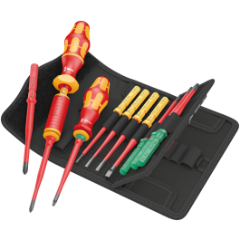 16-delige draaimoment-VDE wisselklingenset. Inclusief 14 klingen (waarvan 12 met geringere klingdiameter) met geïntegreerde veiligheidsisolatie. Met "Take it easy tool finder": Met kleurcodering op profiel en ingelaserde maatcode - voor het eenvoudig en snel vinden van het benodigde gereedschap. Draaimoment-VDE handhouder met instelbaar draaimoment van 1,2 - 3,0 Nm handhouder 817 VDE. Beide voorzien van ergonomische Kraftform Plus-handgreep; harde gripzones zorgen hierbij voor een hoge werksnelheid, zachte gripzones voor een hoge draaimomentoverdracht.